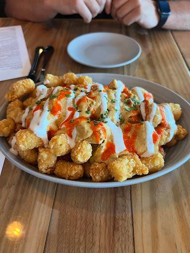 Crispy tots, smoked pecan melted pimento cheese, house hot sauce, sour cream